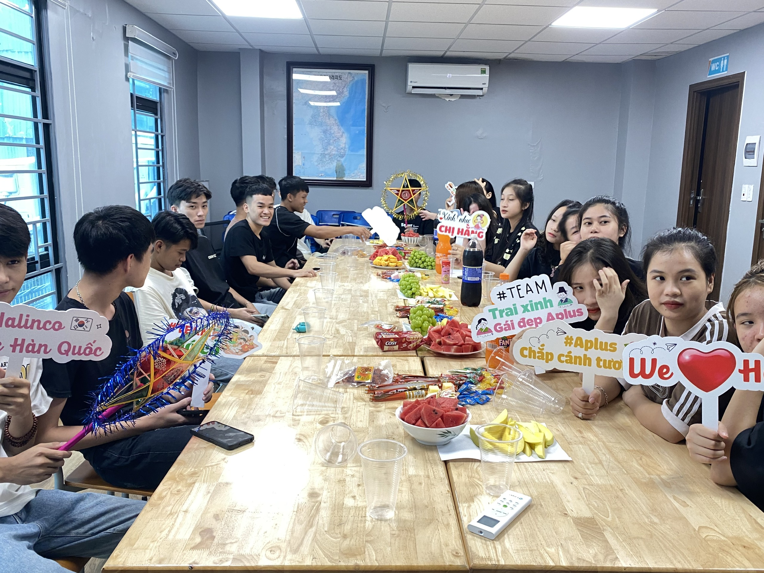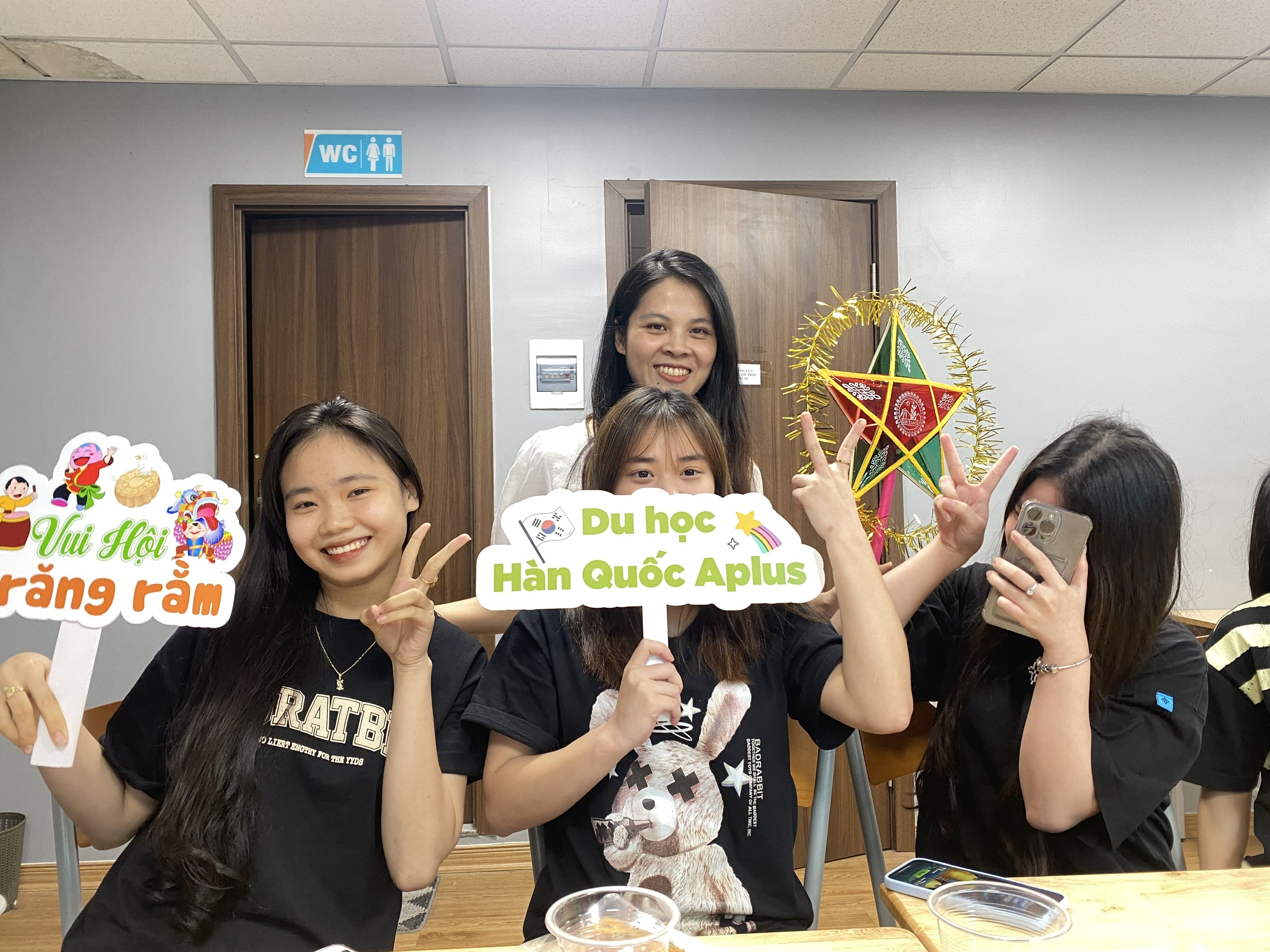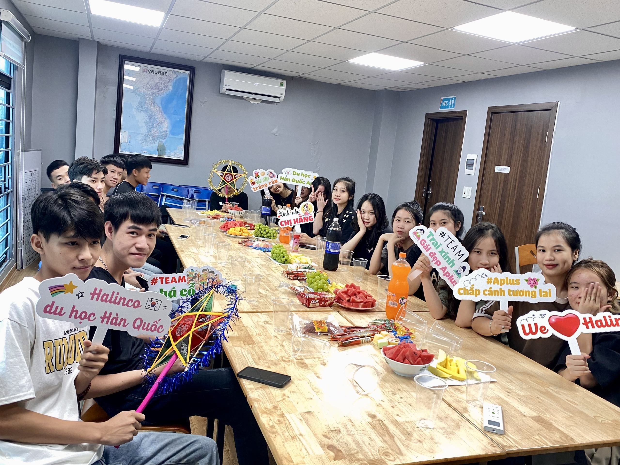 Còn tại Trung tâm tư vấn du học Aplus, chuẩn bị Trung thu cho các bạn học viên 2005 cũng hết sức đặc biệt. Các cô trò cùng nhau làm đèn và rước đèn Trung thu tạo nên không gian sum vầy và tận hưởng những khoảnh khắc đáng nhớ. Với sản phẩm từ chính các bạn cùng nhau tự sáng tạo ra chiếc lồng đèn ông sao v.v, được làm bằng chất liệu sắt kết hợp với tre nứa với đủ kích thước. Để làm nên một chiếc đèn Trung thu như vậy đòi hỏi phải có sự đoàn kết và tâm huyết của nhiều người, dựa trên sự đóng góp tự nguyện. Chiếc đèn lồng đơn sơ dưới những đôi bàn tay tỉ mỉ của các cô trò, lớp tiếng Hàn năm nay trở nên độc đáo và tinh tế, mang một vẻ đẹp đặc biệt, trở thành kỷ niệm vô giá cho các bạn học viên Du học Hàn Quốc trong dịp Trung thu năm nay. Đây không chỉ là niềm vui của bè bạn mà còn là biểu tượng tình yêu thương, sự đoàn kết, tạo lên một khung cảnh ấm áp và đầy tình thân.